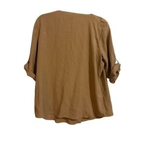 Investment Button Up Down Tan Roll Up Three Quarter Sleeve Petite Large