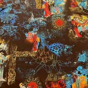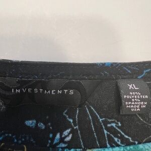 This is a women's knit top by Investments in size XL. It features a multicolor Oriental print with 3/4 sleeves and a round neckline. Made of polyester & spandex knit fabric, this regular fit top has a basic style with a theme inspired by Geisha Girls.