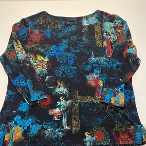 Investments 3/4 Sleeve Knit Top Size XL Multicolor Oriental Print