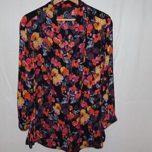 Investments Blouse Button Down Floral Multicolor 3/4 sleeves