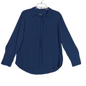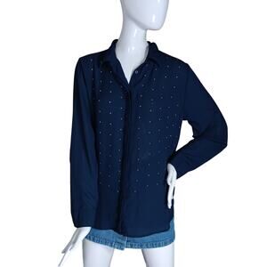 Investments Button Down Blouse Size Medium Blue Sparkle Jewels Long Sleeve
