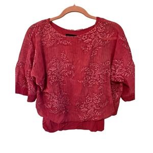 Investments Dillard's Flowy Overlay Lined Top Petite Small Red Dolman Sleeve