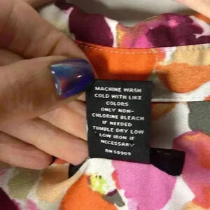 Investments Floral Button Down Tie Front Long Sleeve Top Size 2X