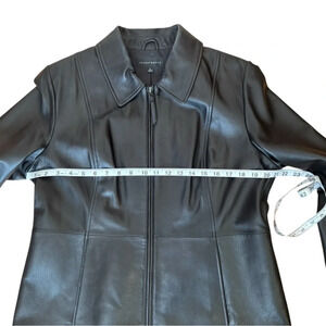Investments Genuine Lamb Leather Long Sleeve Point Collar Zip Front Jacket