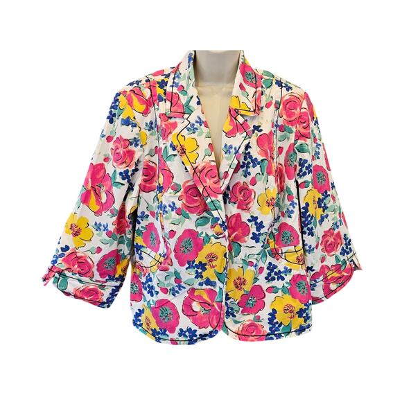 Investments II Jacket Pink Blue Multi Floral Collared Buttons Pockets Lined 22W