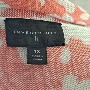 Investments II size 1X Open Front Cardigan Peach & White NWT