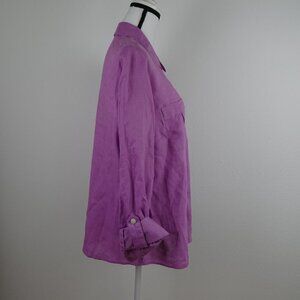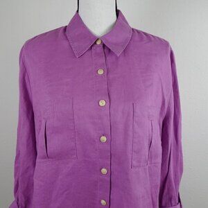 Investments Linen Blouse Top Women's 14W Purple Roll Tab Sleeves