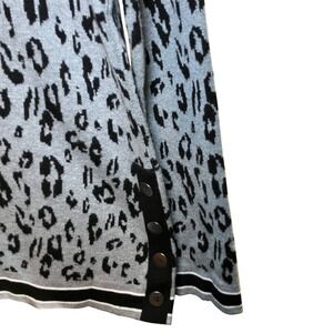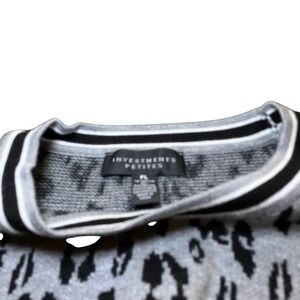 Investments Petites Animal Print Button Accent Gray Pullover Sweater Top
