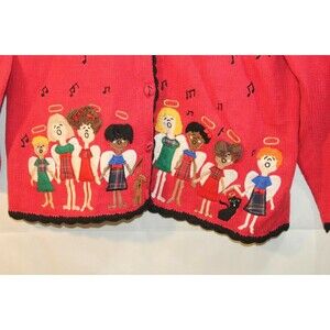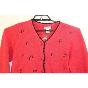 Investments Red Cardigan Musical Children Of The World Sweater Womens Size M
