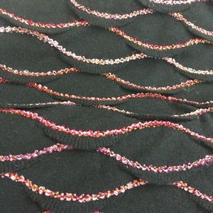 Cute top/shell. Black with shades of pink stitching. Pieced wave top. Bust: 37". Length: 22". New with tags.