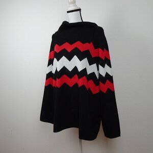 Investments Sweater Women's Plus Size 2X Black Oversized Zig Zag Stripe