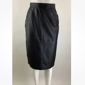 Investments Sz 6 100% Leather Pencil Midi Skirt Black High Waisted Pockets