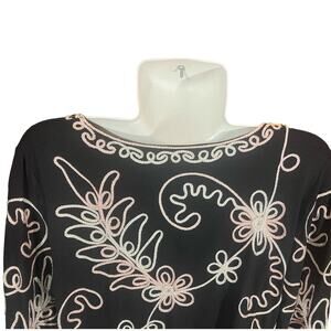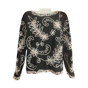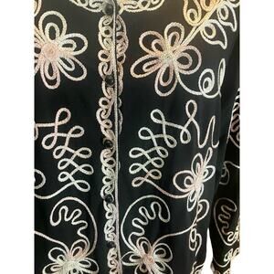 Investments Women's Black W/ Pink/Pearl Crochet Button Front Sweater Cardigan SZ L