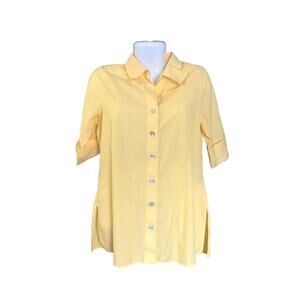 Investments Women's Yellow Wrinkle Free 3/4 Sleeve Button-Up Blouse Tunic SZ 8