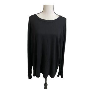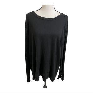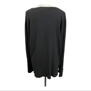 Investments womens black round crew neck buttons on cuffs . Black 2X plus size soft rayon. Sweater Top