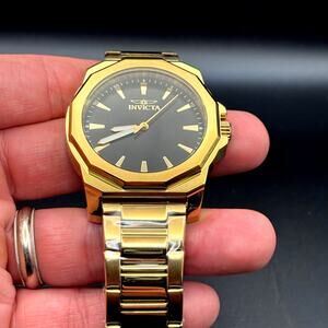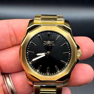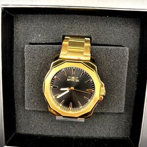 Invicta 46839 Speedway Gold Tone Mens Watch Black Dial Stainless Steel NIBWT