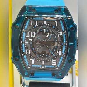 Brand new with box, Sleek Invicta watch with aqua blue strap and black dial. Ideal for modern style. Large sports watch that will turn heads