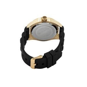 This timepiece is completed by a black, silicone band and it offers water resistance of up to 100 m.