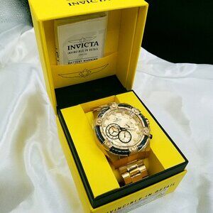 • 100% authentic Invicta Bolt 25515 men’s watch — 52 mm stainless-steel case, gold tone bracelet