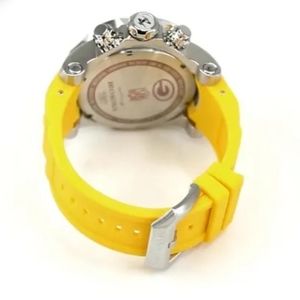 This impressive Invicta NFL watch features a precise Quartz movement as well as a yellow, green, steel case. Its , metal dial is enclosed by a highly protective Flame Fusion Crystal. This watch is finished by a strong steel, yellow, green, stainless steel, silicone, aluminium band, and it offers 1000 m water resistance.