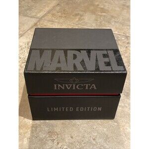 Black, lnvicta x Marvel, limited edition, watch box, storage case. The case is new and had a new watch in it but unfortunately it wasn't the Marvel watch so selling both separately. Comes with the cleaning cloth and welcome card. Z250222 stamped on bottom of box which is the model number for the speedway men's watch. There are some fingerprints and minor shelf wear on the box but it is still in great condition.