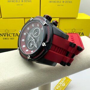 Discover the Invicta Men's Bolt Black - Red Dial Chronograph watch. This 52mm timepiece features a striking red dial and black case. The chronograph function adds precision to your daily routine. The red polyurethane strap offers a bold look. Perfect for those who appreciate style and functionality.