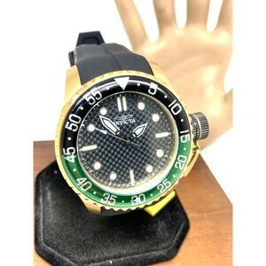 Invicta Men's Watch 35661 Pro Diver Quartz Gold Black Green Bezel Rubber Band $495 (L7099Y)