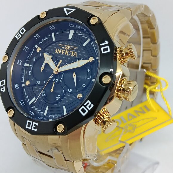Invicta Pro Diver 37725 Men's 50mm Gold S/Steel Japanese Quartz Chrono Watch NWT