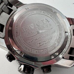 This is being sold by its original owner -- a big fan of Invicta watches. This watch has been worn and loved as is shown in the pictures. Please see evidence of scuffing on band, black rim with numbers, and the window to the date. While this watch may not be brand new, it is a great, reliable watch with lots of life left in it!