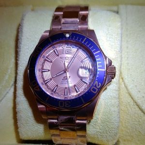 S1 Invite Racing Team Automatic Men's Rosetone. Rosetone with blue accent. Stainless steel bracelet, never worn.