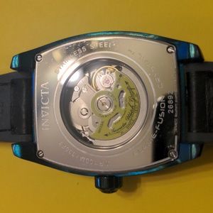 Green and black, rectangular case with unique exhibition back showing the inner workings and special rotor. Only worn a couple of times. Never needs a battery!