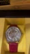 Stylish Invicta watch with a silver face and red leather strap. Ideal for any occasion.