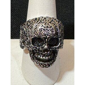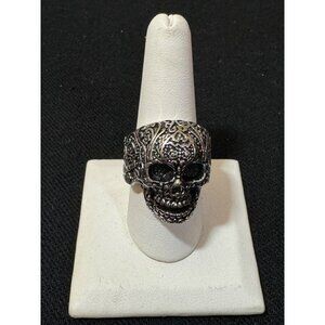 Gothic Skull Ring With Intricate Detailing In Antiqued Silver Tone Men's Size 10