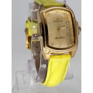 Title: Vintage Invicta Special Edition Gold-Tone Watch with Yellow Leather Strap