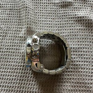 This Invicta watch from the Venom collection offers an exact Quartz movement, with an incredible steel case. The face displays an antique silver, metal dial protected by our proprietary Mineral Crystal. The design is completed by a steel, stainless steel band. This timepiece can resist water for up to 1000 m.