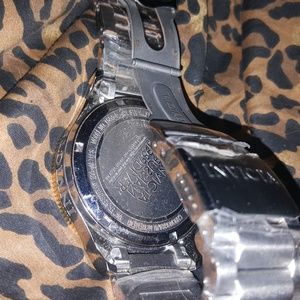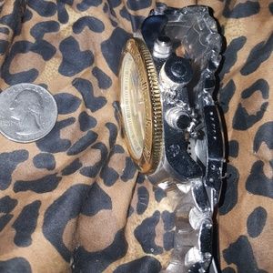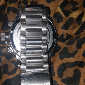 Never worn, plastic protection still on band, gold tone stainless steel. Large face. Have one in Rose Gold and Yellow Gold. Needs battery.