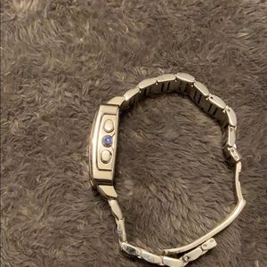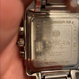 Trinite Nite Glow Stainless Steel Chronograph Water Resistant Day/Date Watch. This is a beautiful watch that gets you noticed and gets you compliments. NOTE the following: day/date feature not accurate (and I haven’t been able to figure out how to fix it); and it needs a battery. Sold as is/final sale. Scratches on band/back of watch consistent with age/use. Watch face is intact with no scratches or deformities.