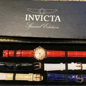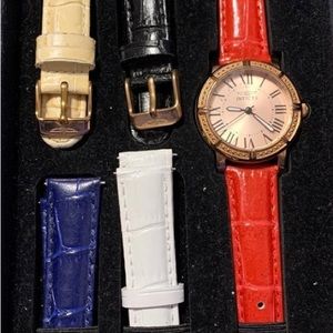 Invicta Watch Set with 5 interchangeable color leather straps. (Black,Beige, Blue, Red & White)