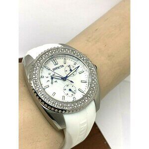 Invicta Women's Watch 28486 Angel 38mm Mother of Pearl Dial Crystals Accent Gemmed White Rubber Strap (L6046Y)