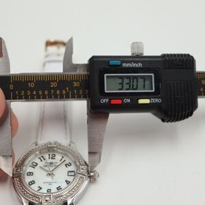 Pre-owned but in great condition! The band is in good condition, and is a replacement leather strap. The crystal is also in great condition. The watch is currently running smooth and keeping accurate time. Battery was replaced (3/31/24), but we still can NOT guarantee battery life due to various reasons such as unknown shelf time. Due to the nature of used/vintage watch, we can't guarantee long term functionality and accuracy. Typically, for quartz watch, if it runs, it will run pretty accurately.