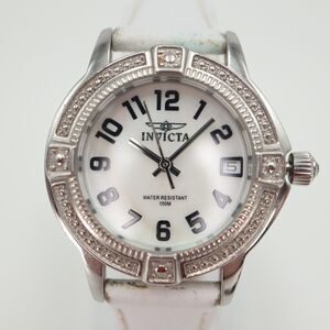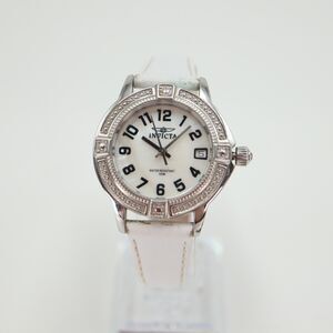 Invicta Womens Watch 33mm Silver Tone MOP Dial White Leather 100m w New Battery