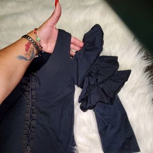 Open on the shoulder as a tank top as the Sleeve cont on your arm