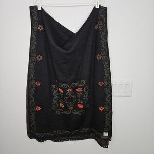 Invisible World, Embroidered Shawl with Floral Patterns, Olive And Black, Alpaca