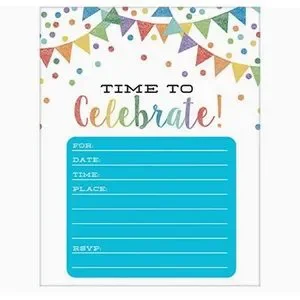 UNIQUE DESIGN: These invitations feature the Pennant design with "Time to celebrate!" headline.