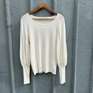 Beautiful puff sleeves add some character to this coat neck ribbed long sleeve top. Soft material makes this blouse a no brainer for comfort and class.