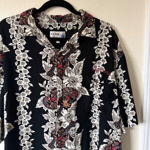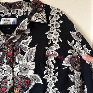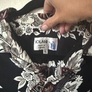 Iolani Made In Hawaii Floral Hawaiian Button-Up Shirt Black & White Sz XL *Notes