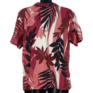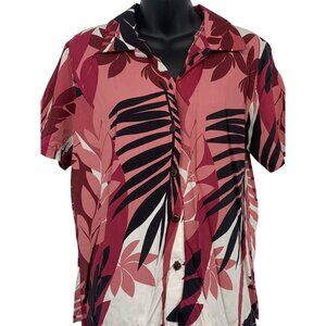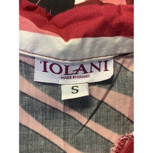Iolani Vintage Hawaiian Shirt Red Pink Size Small S Palm Leaf Button Up Collar