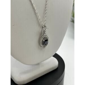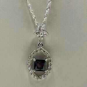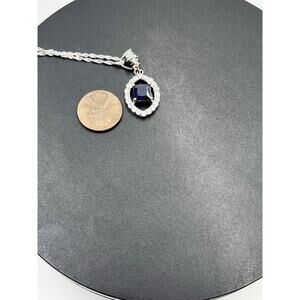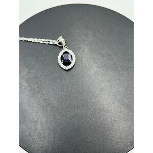 Iolite Center Surrounding CZ’s Pendant Twisted Sterling Silver Rope Chain 20”