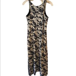 Tropical print tank maxi dress has convenient built in bra. Size reads L, but please see measurement photos as it looks small to me.