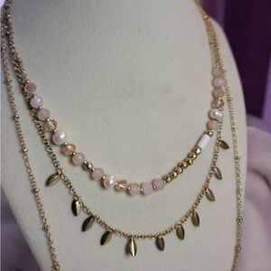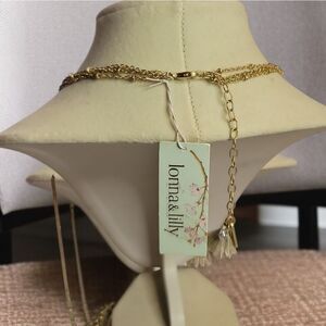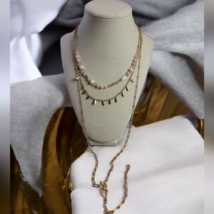Iona & Lilly Triple Layered Necklace with gold chains, beads and charms - NWT